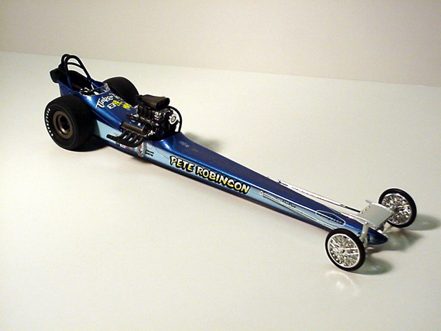 When Pete Robinson showed up at the 1961 Nationals, he was relatively unknown even though he had already been drag racing for more than ten years developing his skills and knowledge of the sport he loved. As he began to defeat some of the top names in the sport, he soon became one of drag racing's stars. Making the jump from unknown to rising star was one of the factors that contributed to his nickname, "Sneaky Pete." Pete defeated Tom McEwen in the AA/Dragster final and went on to claim the Top Eliminator title in that same 1961 Nationals and had low e.t. of the meet. In 1964, Robinson switched to the newly restored NHRA Top Fuel category and went on to capture runner-up positions at the 1965 Springnationals to Maynard Rupp and the 1967 Springnationals to Don "Snake" Prudhomme. "Sneaky Pete" also had three NHRA Top Fuel national event titles, including the 1966 World Finals against Dave Beebe and the 1970 Summernationals where he defeated Jim Nicoll. After his 1970 Summernationals win, Robinson left the cockpit to concentrate on manufacturing innovative drag racing components that included lightweight supercharger cases. At the time, Robinson had the only SOHC Ford powered dragster left in Top Fuel and named Bud Dabler as his new driver. After recording his quickest time ever, a 6.50 e.t. at an AHRA Grand American Series race three weeks prior, Robinson decided to go to the 1971 NHRA Winternationals to take the seat from his driver, who was not completely comfortable in "Sneaky Pete's" new dragster with its revolutionary ground effects system. After recording low e.t. of the day, a 6.77 second pass, Robinson's next run would be his last. During the run, Pete's dragster chassis twisted and the front tires spun off their wheels, forcing the car into the right guardrail. On February 6, 1971, drag racing would lose one of its most-liked personalities as well as one of the greatest innovators when Robinson, 37, succumbed to his injuries at a Pomona hospital later that day. Pete Robinson is still known today for his popularity among fans and fellow competitors, and many say he surely would have been involved in the sport today. In 1992, he was inducted into The Drag Racing Hall of Fame. Your 1320, Inc. Tinker Toy V replica is one of 5000 pieces and is fully licensed by Pete Robinson's family, his wife Sandra and daughter Kelly. Home |