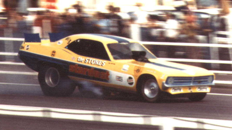 This model is very similar in appearance to Shumacher's previous Plymouth 'Cuda F/C, which he ran at the Pod against Paula Murphy. Rather than suffer the return airfreight costs to get it back home in timely fashion it was sold to Santa Pod Raceway, run as an SPR "house" car with Allan Herridge at the wheel before being sold on to the Stones (in which guise it spent the majority of its active life, and is best remembered in Britain).